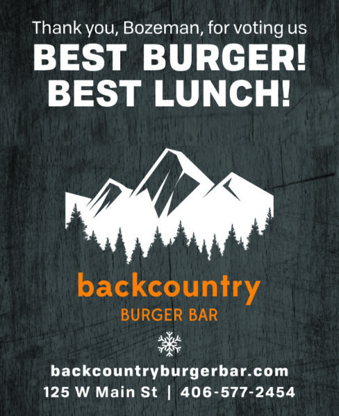 Come the noon hour, there are so many eateries to help bustling locals have the energy they need to finish out the day. Step into Backcountry Burger Bar for replenishment at their popular downtown spot, voted Best Lunch. A menu of eclectic patties, small plates and salads are best washed down with a craft brew on tap. Enjoy the Best Burger in Bozeman seven days a week.