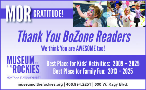 Discover some educational fun with an afternoon at Museum of the Rockies whose displays and many activities give wondrous minds a chance to learn in exciting ways. Take in a show at Taylor Planetarium or wander through the famous Siebel Dinosaur Complex, with changing exhibit Becoming Jane: The Evolution of Dr. Jane Goodall opening this month. MOR is the regular favorite for Best Place for Family Fun and Kids’ Activities.