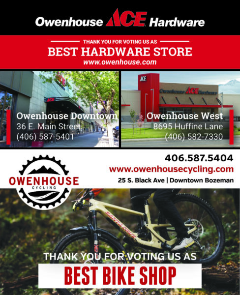 Beyond provisions, there’s more to shop for in maintenance of hearth and home. Owenhouse prevails in another survey cycle as the area’s Best Hardware Store. Locally owned and operated, two Bozeman locations provide a broad range of tools, home improvement products and gardening supplies, backed by knowledgeable staff dedicated to helping customers find exactly what they need.